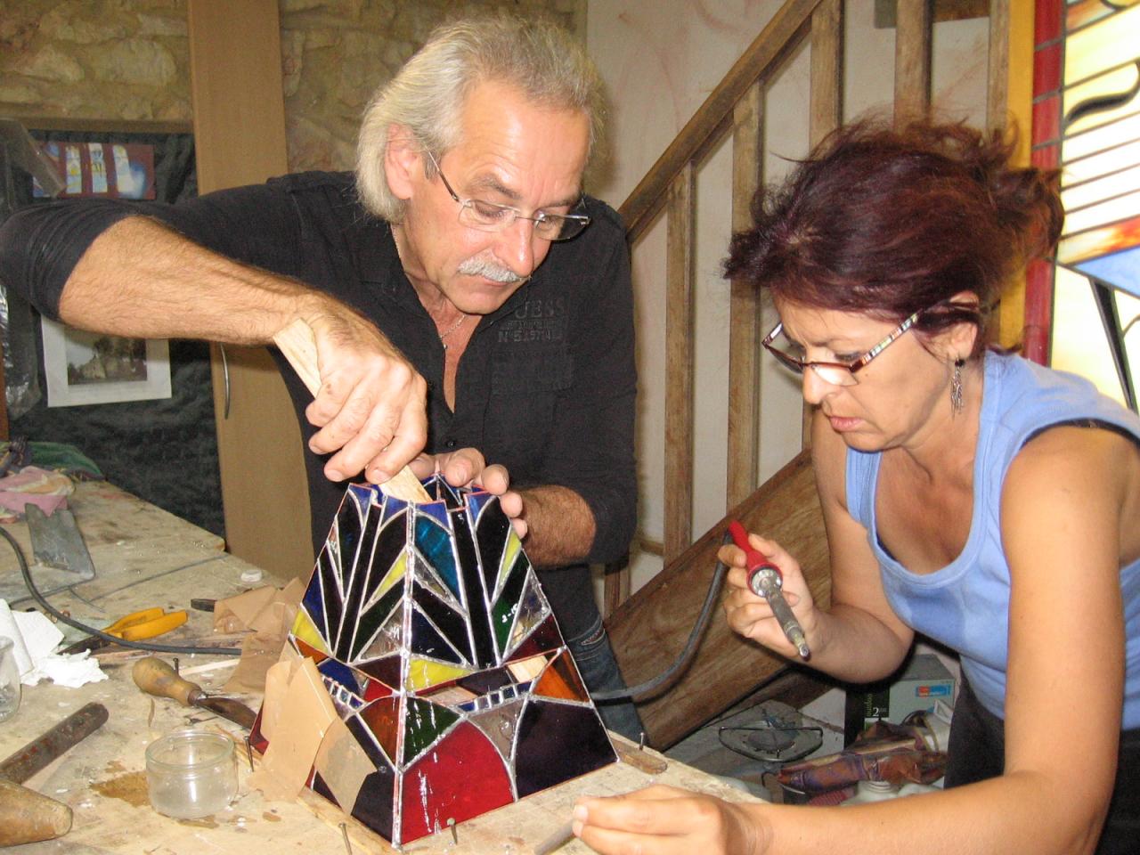550€ les 4  journées de stage vitrail, plomb et tiffany, fusing